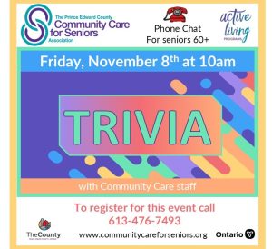 “This is our regular monthly programming.  Please call 613-476-7493 or email info@communitycareforseniors.org for  information.”