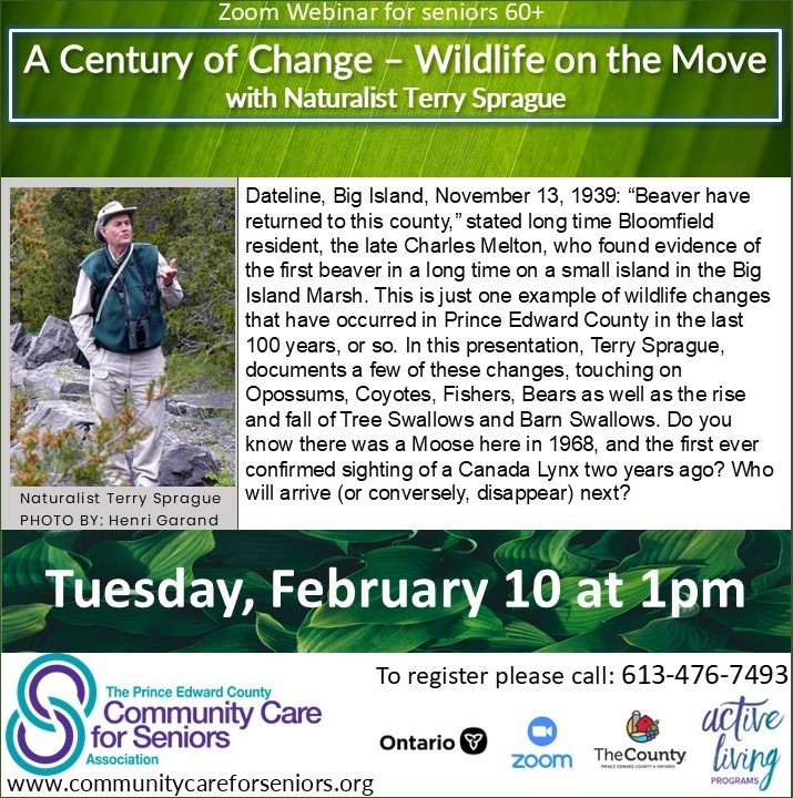 ZOOM WEBINAR – A Century of Change – Wildlife on the Move with Naturalist Terry Sprague