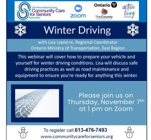 Zoom Webinar – “Winter Driving” with Lisa Lapierre, Regional Co-ordinator with Ontario Ministry of Transportation