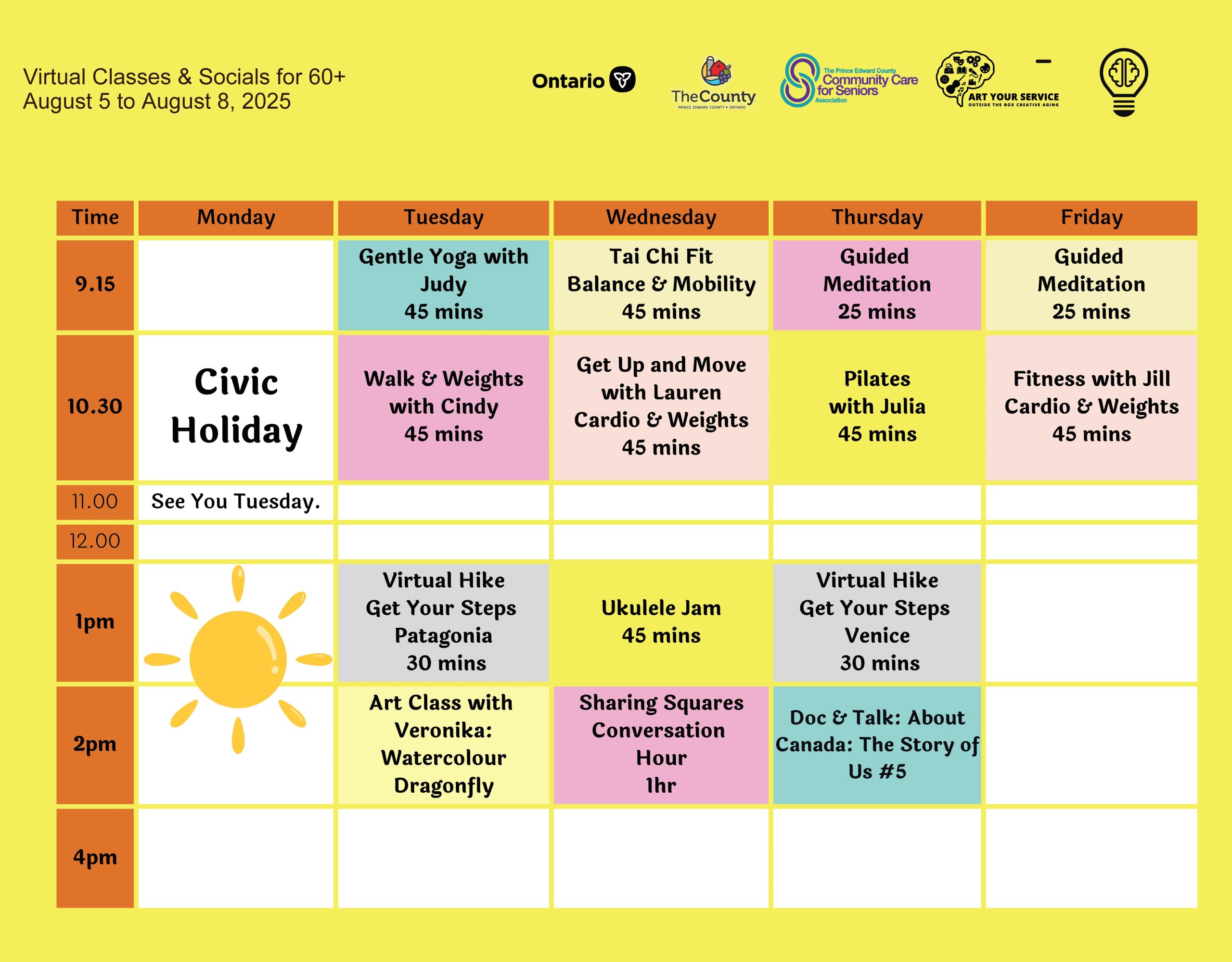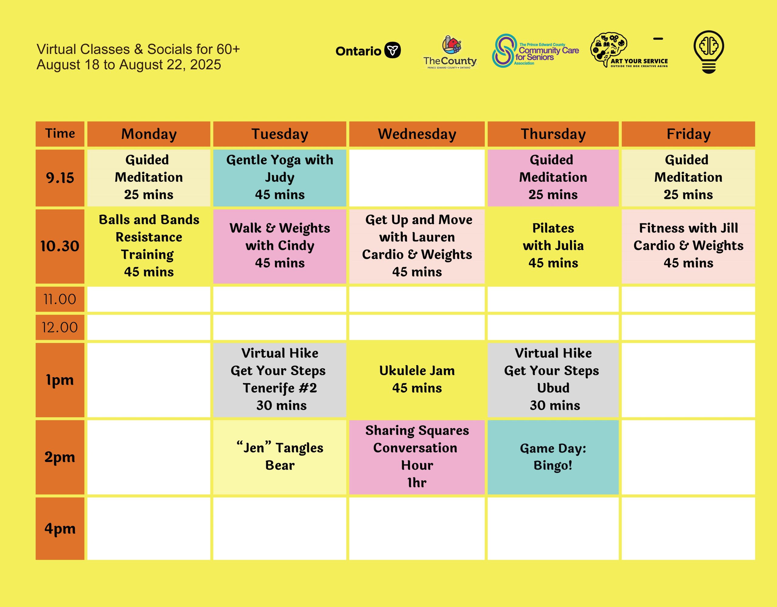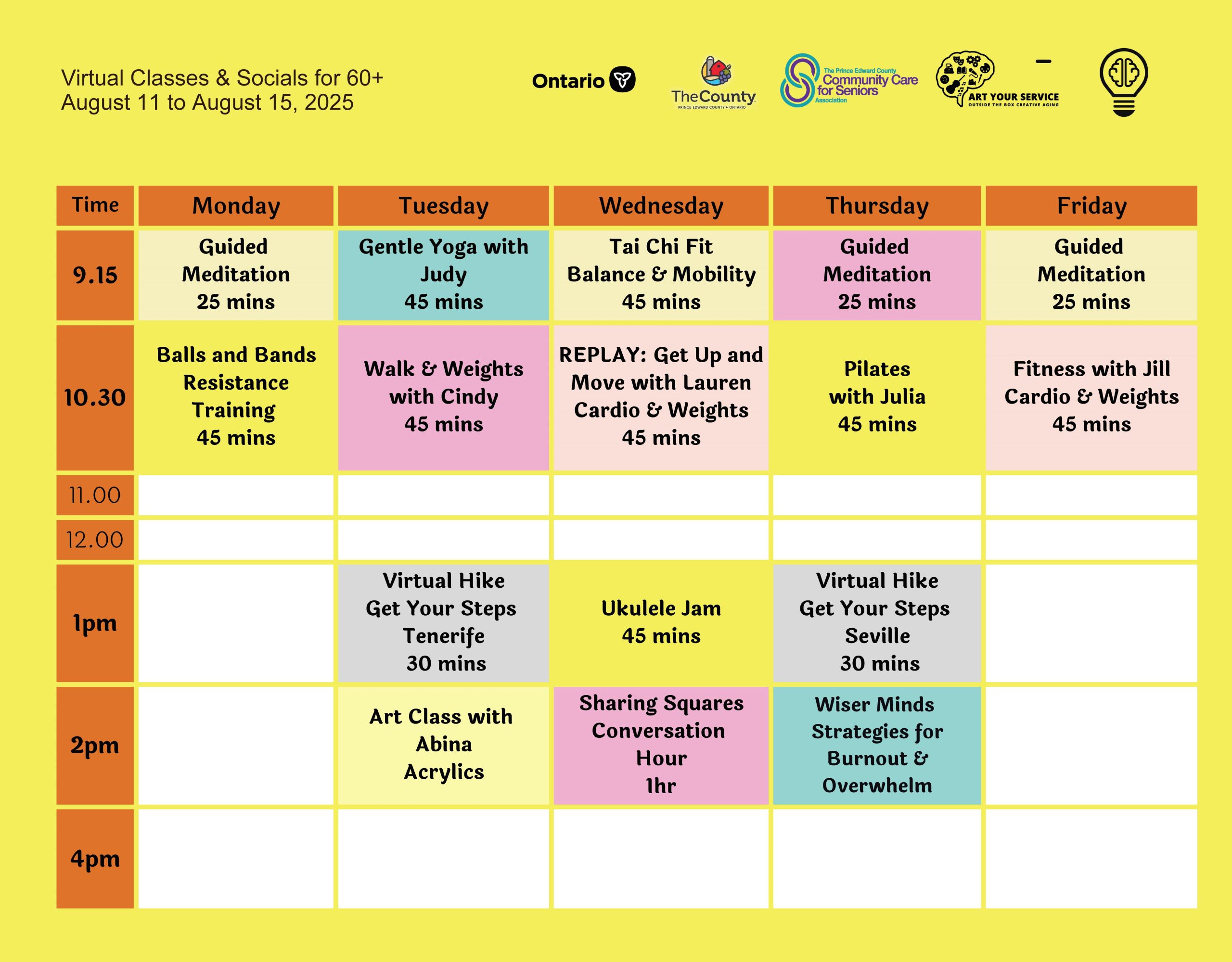 Virtual programming is offered through Art Your Service and participation is free with all Active Living Program memberships. Active Living Program – The Prince Edward County Community Care for Seniors