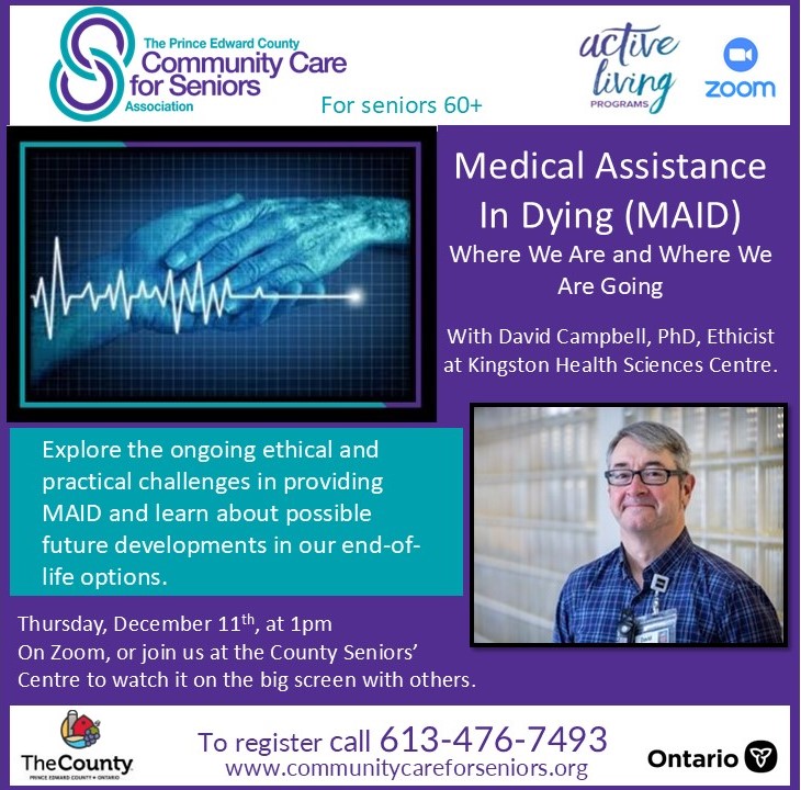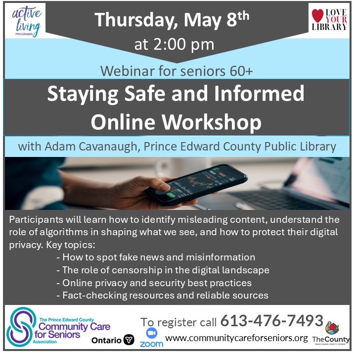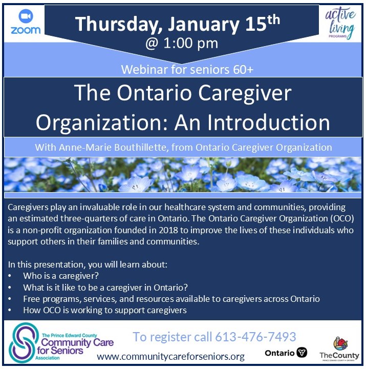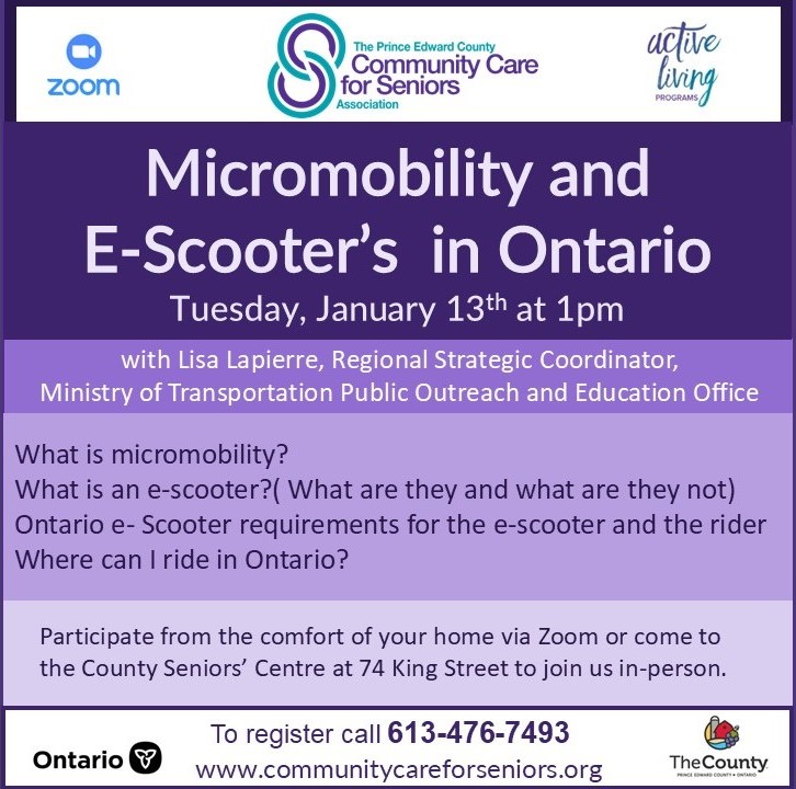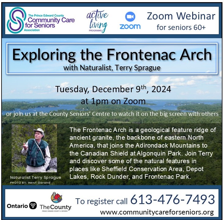 You can join virtually from the comfort of home or come to the County Seniors’ Centre to watch the webinar on the big screen. To register, call 613-476-7493.